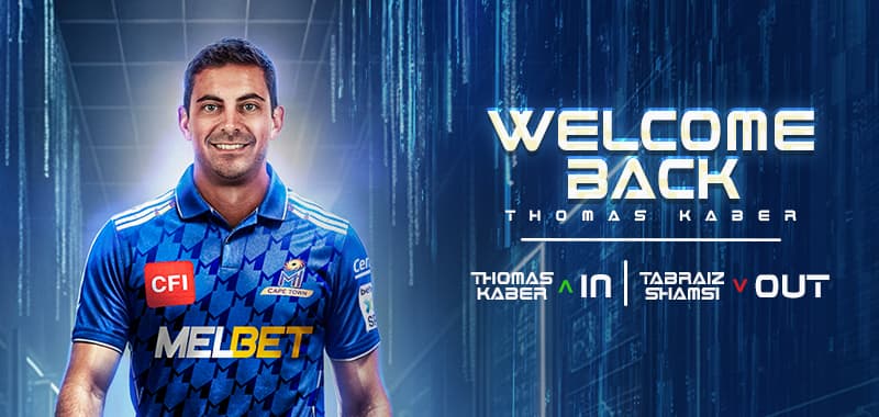 Thomas Kaber, the South African all-rounder, returns to MI Cape Town as a replacement for Tabraiz Shamsi, who is unavailable for the season due to personal reasons.